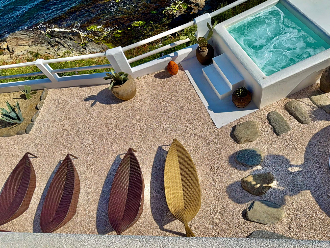 Потопете се в топлия мини-басейн в двора си, заобиколени от кактусови градини и аромат на маслини, докато хоризонтът пред вас остава необятен.